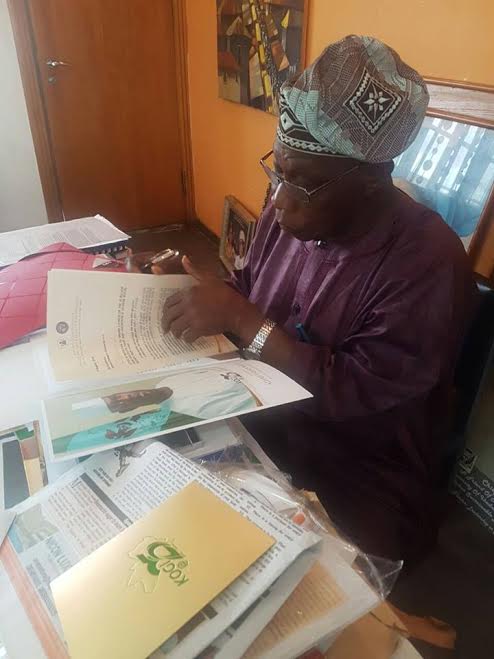 Former President Olusegun Obasanjo pictured going through his invitation to Kogi at 25 celebration. Yesterday marked the 25th year since the creation of Kogi State and various activities have been lined up for the commemoration of the anniversary. It will kick off with the unveiling of the state logo and visitation to orphanage homes today while the Islamic prayer for the progress of the state will follow on Friday, 26th.
